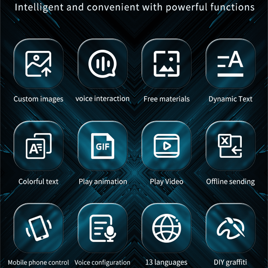 • Multi-function Remote: Use the remote to instantly switch between 17 pre-loaded automotive-themed animations or your own uploaded images! Quickly display anything you need with ease.