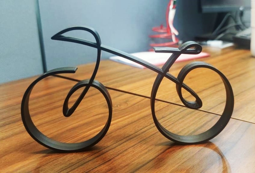 This is a Minimalistic Bicycle Sculpture. It is in a Wire Frame Style and looks like the Silhouette of a bike. It makes a great gift for a cyclist or mountain biker. This piece of decor lets you add a bit of personalisation to your desk at work or a little bit more bike at home.
